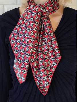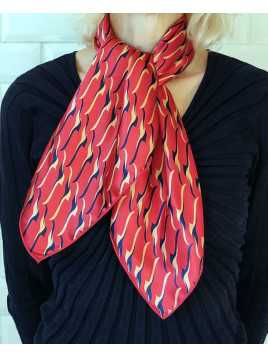 Prix 75,90 €FOULARD-CARRE-SOIE-FEMME-2472 - "Réseau Écarlate" Le carré...