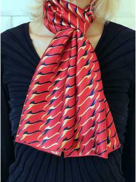 Prix 70,90 €- FOULARD-ECHARPE-SOIE-FEMME-2472"Réseau Écarlate" L'écharpe...