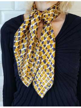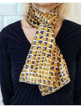 Prix 70,90 €FOULARD-ECHARPE-SOIE-FEMME-2470- "Mosaïque Dorée" L'écharpe...
