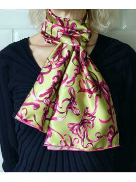 Prix 47,53 € Prix de base 67,90 €FOULARD-ECHARPE-SOIE-FEMME-2456 - "Nœuds en Fête" L'écharpe...