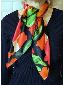 Prix 51,03 € Prix de base 72,90 €FOULARD-CARRE-SOIE-FEMME-2454 "Jardin de Minuit" Le carré...