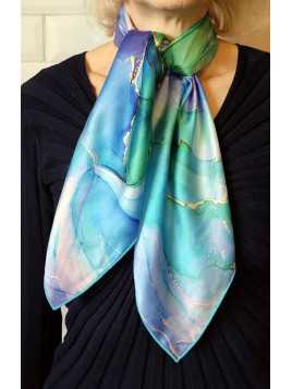 Le foulard en soie : un accessoire indispensable pour chaque saison- "Rubans d’Azur" (Référence : 2457) Synthèse : Le carré...