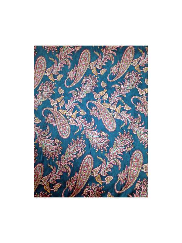 paisley s’entrelacent sans jamais se heurter, dans une composition fluide. Chaque détail du dessin révèle un soin extrême : les contours sont nets, les teintes se superposent en transparence, et l’ensemble crée une impression de mouvement paisible.