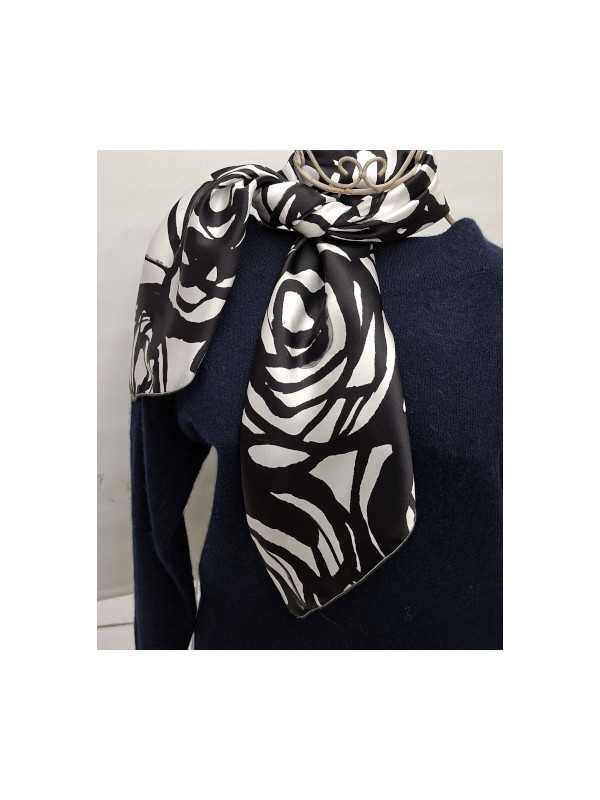 FOULARD-SOIE-FLEURS-NOIR-BLANC-2510