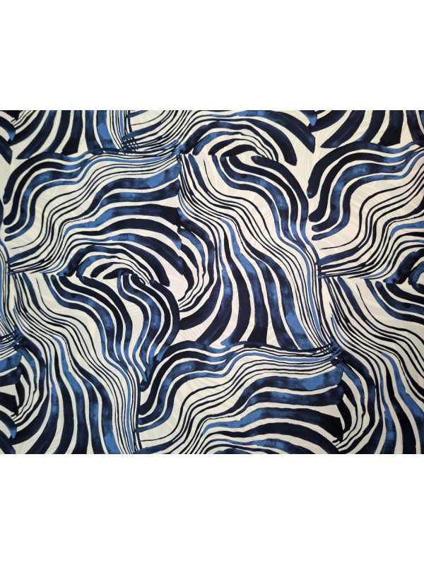 L’impression de haute qualité garantit une restitution fidèle et précise de chaque ligne. Les contours sont nets, sans surcharge, et les courbes parfaitement équilibrées. Cette maîtrise technique sublime le tissu utilisé : une soie naturelle d’origine européenne, fluide, légère et subtilement brillante. Au toucher, elle est douce et agréable, et son tombé est impeccable.