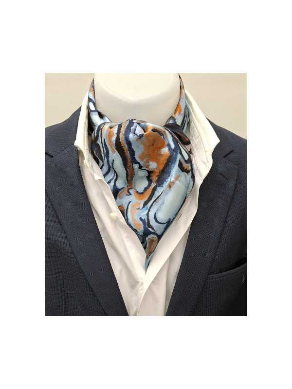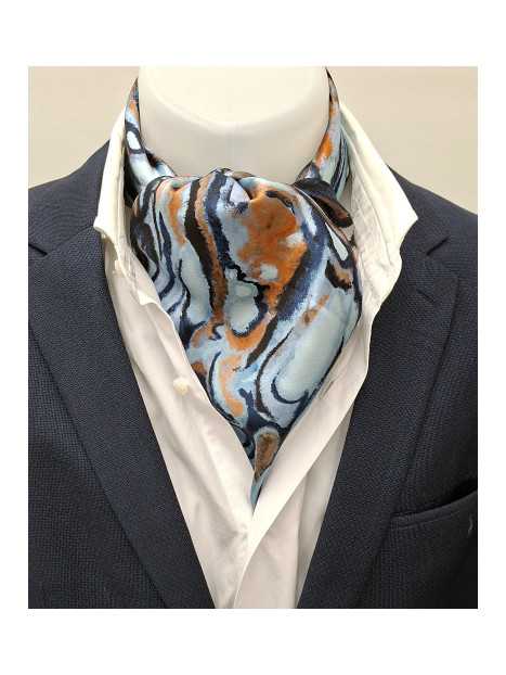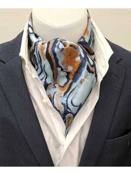 : FOULARD-SOIE-VOLUTE-BLEU-ORANGE-2519