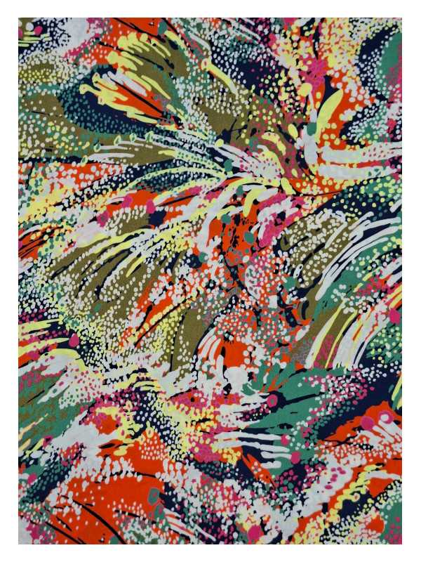 Cette composition visuelle, à la fois riche et maîtrisée, joue avec les contrastes sans jamais heurter. Chaque couleur dialogue harmonieusement avec sa voisine, créant une dynamique vivante, vibrante mais toujours élégante. Les lignes, tantôt floues, tantôt nettes, créent un effet de superposition douce, presque picturale.