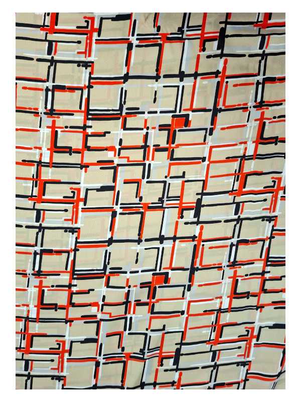 L’écharpe en soie "Rythme Urbain" traduit l’énergie de la ville dans un motif géométrique vibrant. Des lignes rouges, noires et blanches s’entrelacent en un quadrillage moderne sur fond beige, créant une dynamique captivante. Ce design structuré et contemporain en fait un accessoire affirmé, aussi élégant en journée qu’en soirée. Grâce à son impression de haute qualité, chaque détail ressort avec précision sur la soie fluide.