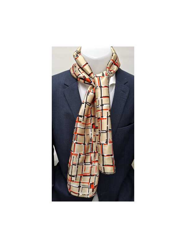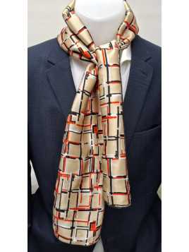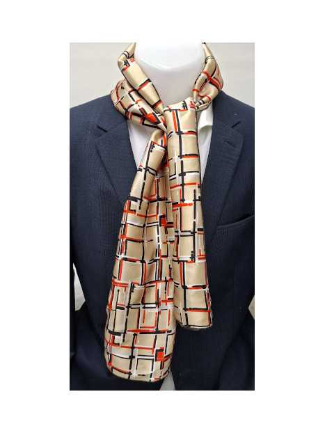 Référence : FOULARD-SOIE-CARREAU-BEIGE-NOIR-ROUG-2517