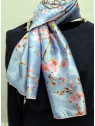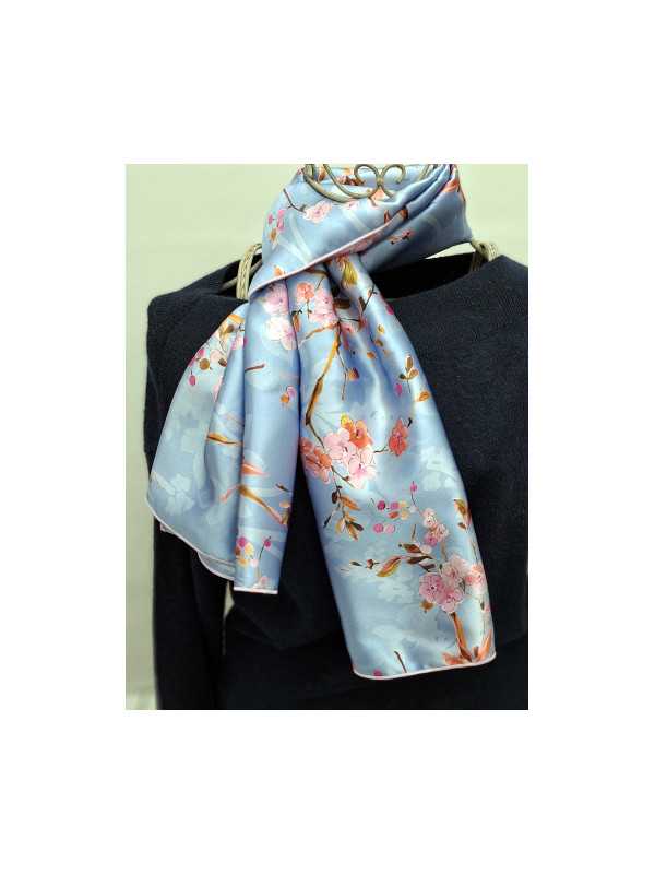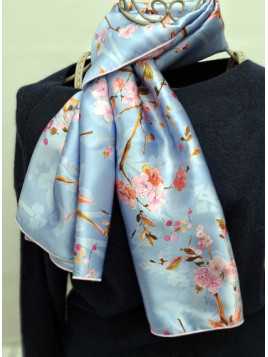 écharpe  "Sakura Céleste"  FOULARD-SOIE-LUXEFLEURS-JAPON-BLEU-CLAIR-3022-1