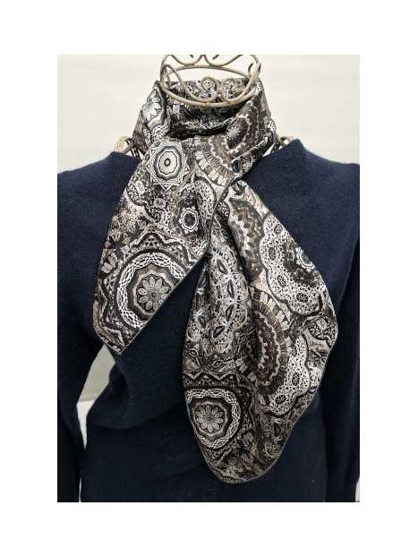 Référence : FOULARD-SOIE-CERCLE-GRIS-NOIR-BEIGE-2518