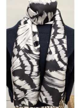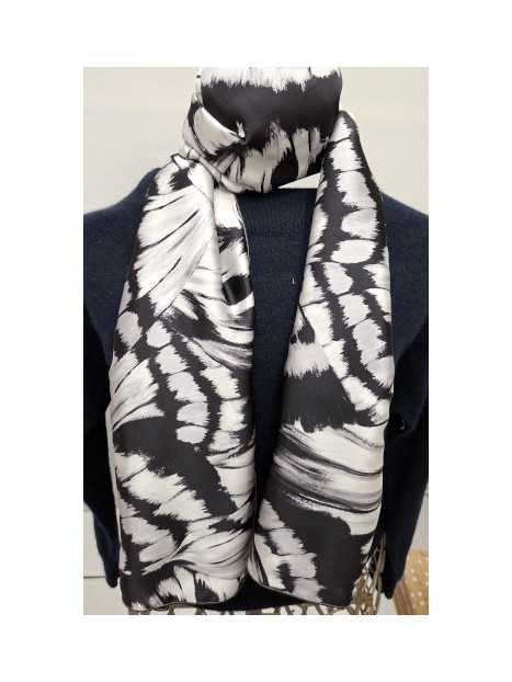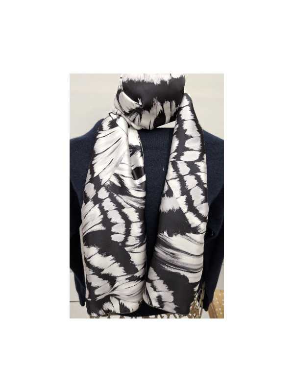 : FOULARD-SOIE-LUXE-AILE-PAPILLON-NOIR-BLANC-3019-