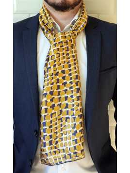 FOULARD-ECHARPE-SOIE-HOMME-2470"Mosaïque Dorée" L'écharpe...